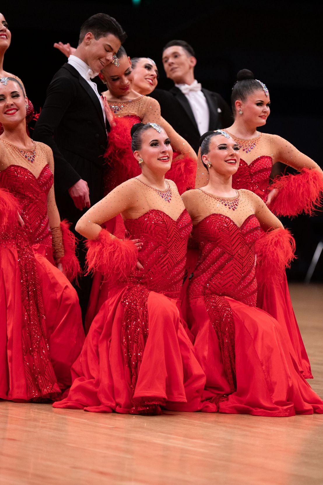 In gewohnt geschachtelter Form tanzten auch die acht qualifizierten Mannschaften der Lateinsektion um den deutschen Meistertitel. Und auch wenn der Grün-Gold-Club in gewisser Weise seine ganz eigene Liga bildet und viele Alleinstellungsmerkmale für sich hat, hat das A-Team von Blau-Weiss Buchholz bereits ab der Vorrunde ein fantastisches Turnier getanzt. Mit einer unglaublich abwechslungsreichen und überraschenden Choreografie zeigte die Mannschaft tänzerische Klasse auf internationalem Niveau. Der Titel des Deutschen Vizemeisters und die Qualifikation für die Weltmeisterschaft krönten diese Leistung. Das überraschende Team der Lateinsektion war eindeutig der Aufsteiger vom TSC Walsrode. Mit einem beeindruckend stimmigen Gesamtprogramm und einer anspruchsvollen Choreografie überzeugte das A-Team schon in der Vorrunde und erreichte verdient die Zwischenrunde. Hier belegte die Mannschaft den sechsten Rang.