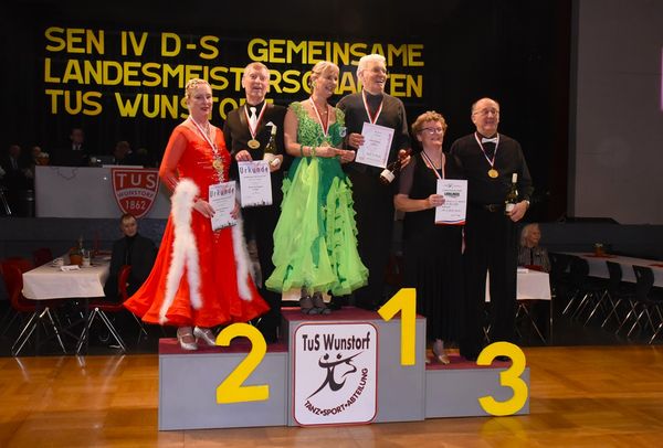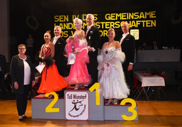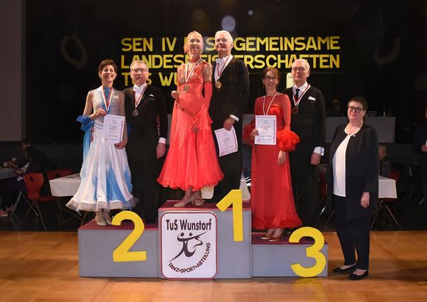 Am 1. März war die schöne Aula des Schulzentrums am Spalterhals in Barsinghausen wieder einmal Schauplatz eines tanzsportlichen Großereignisses: In Kooperation mit dem Niedersächsischen Tanzsportverband lud die Tanzsportabteilung des TUS Wunstorf alle Tanzbegeisterten ein, als Akteure auf der Parkettfläche oder als Zuschauer an deren Rand an den Gemeinsamen Landesmeisterschaften der Nordverbände für die Senioren-Altersgruppe IV teilzunehmen (ja, die Zeit der „Masters“ ist Geschichte, und nun heißen sie wieder in altehrwürdiger Tradition Senioren). Und so strömten die Fans unserer begeisternden Sportart bei herrlichem Frühlingswetter aus allen Teilen Norddeutschlands in Barsinghausen zusammen, um gemeinsam spannende und am Ende hoch spektakuläre Stunden im Zeichen des Tanzsports zu verbringen.