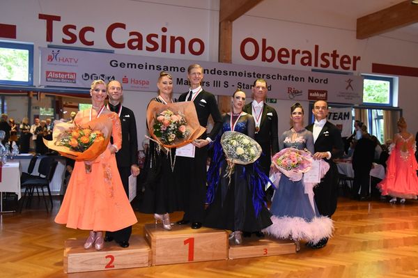 Der Tsc Casino Oberalster hat schon viele große Meisterschaftsturniere ausgerichtet und dabei eine Menge Erfahrungen und Routine gesammelt. In diesem Jahr lud er zu den Gemeinsamen Landesmeisterschaften der Masters III S Standard in sein Vereinsheim ein, dessen Saal auf den ersten Blick für ein solches Turnier etwas eng bemessen erscheint. Doch die Gastgeber hatten alles bestens vorbereitet und waren mit einem großen Helferteam emsig bemüht, den Gästen, ob aktiv oder passiv beteiligt, einen schönen Rahmen für diese spannende Meisterschaft zu bieten. Die tanzenden Paare revanchierten sich diszipliniert mit geschickter Raumaufteilung und dennoch spektakulären tanzsportlichen Präsentationen. Und so konnte Turnierleiter Bernd Blaschke sorgenfrei und gutgelaunt den stimmungsvollen Nachmittag moderieren.