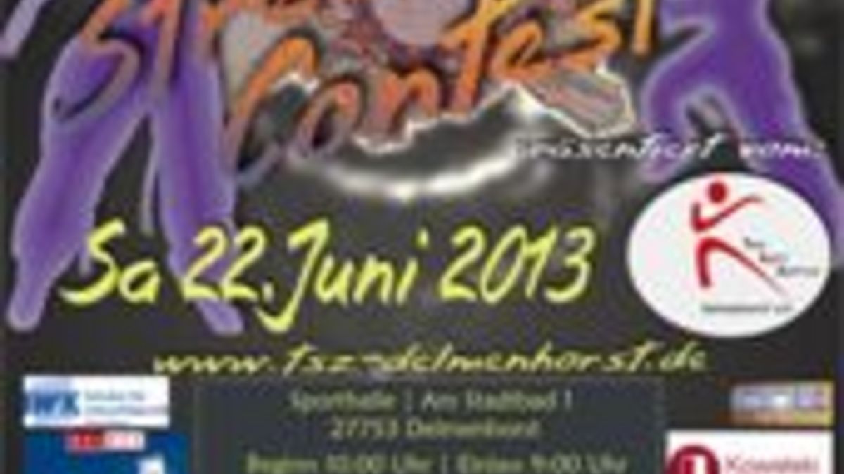 Was erfolgreich war, soll auch erfolgreich bleiben! Darum heißt es auch in diesem Jahr wieder "Streetdance Contest" in Delmenhorst. Unter dem Motto "Wir wollen mit Euch allen wieder durchstarten" veranstaltet das TSZ Delmenhorst bereits den sechsten Contest dieser Art. Termin ist der 22. Juni 2013.