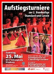Am 25. Mai finden die Aufstiegsturniere zur 2. Bundesliga Standard und Latein in der MTV Triftweg Halle in Nienburg statt. Für das Latein A-Team des TSC Walsrode geht es hier noch einmal um alles oder nichts, während Niedersachsen im Standardbereich außen vor ist. Hier kämpfen derzeit Mannschaften aus Hessen und Berlin um den Aufstieg in die 2. Bundesliga.