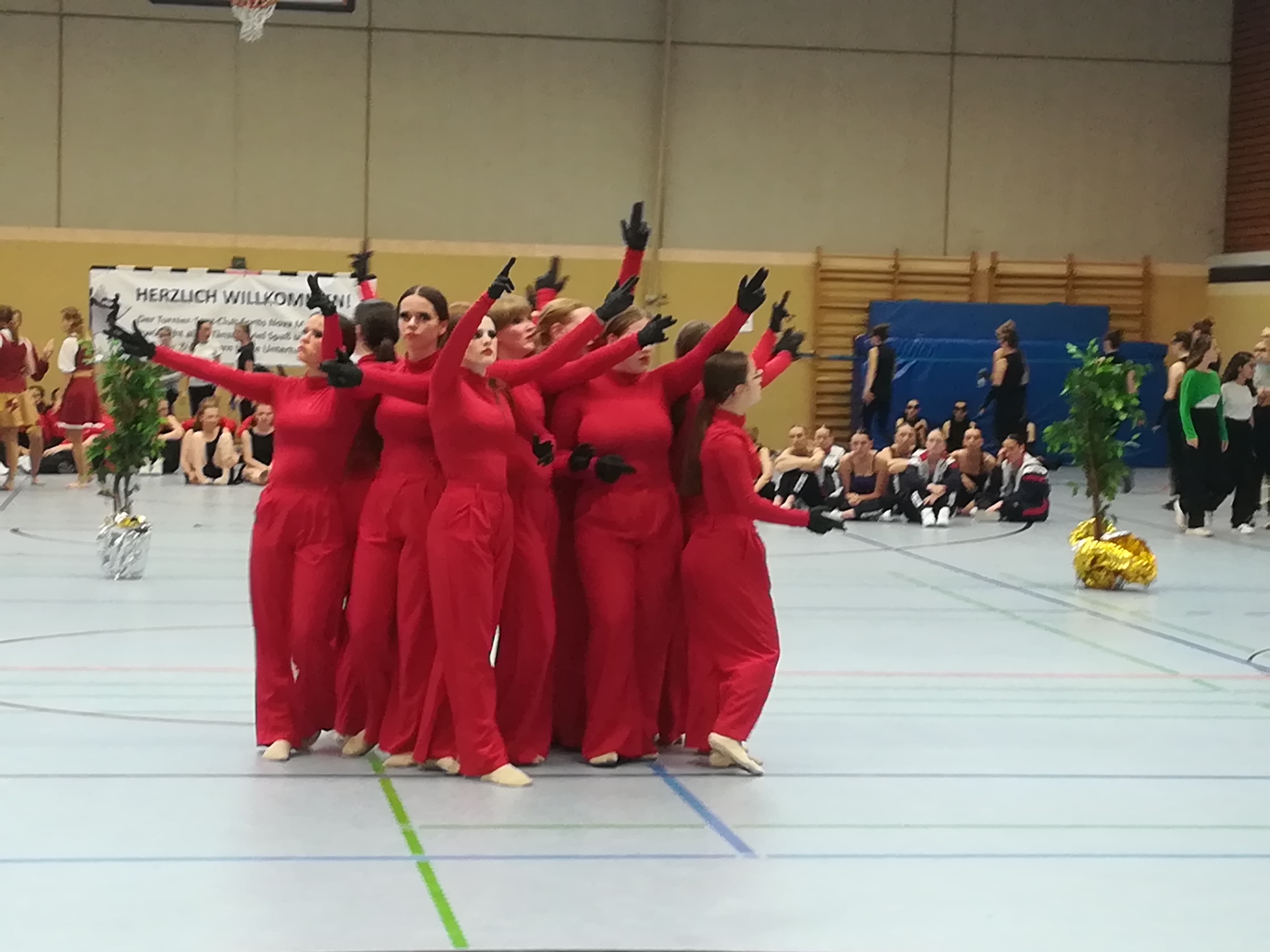 9 Mannschaften starteten in WK IV. Das noch unerfahrene Team aus Laatzen war doch ob der Kulisse recht unsicher, und evtl. hat auch eine Akrobatikfigur in der Choreographie dazu beigetragen, dass das Team den 9. Platz (von 9) belegte.
