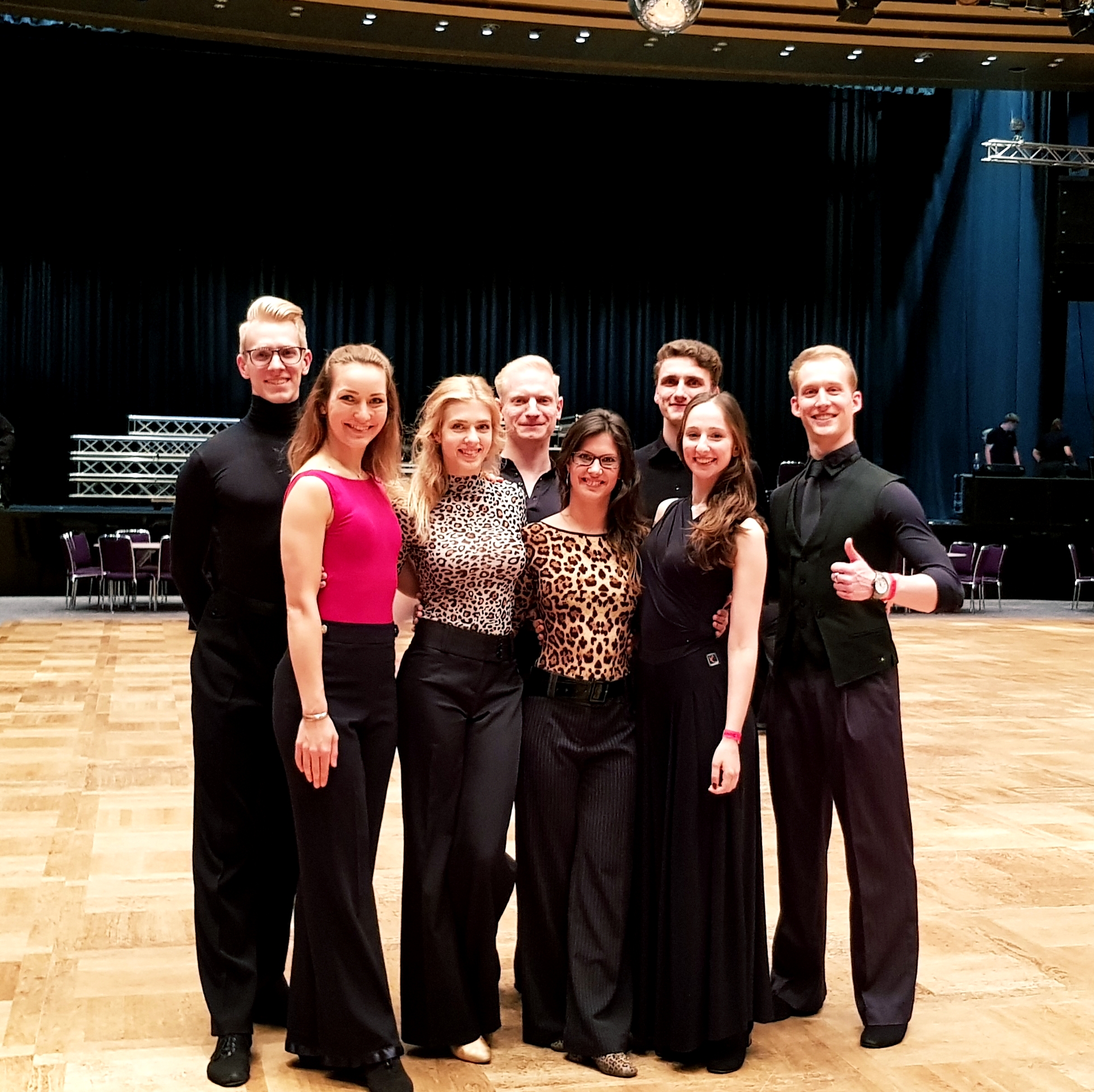Das Foto zeigt die Standardtänzer Patrick Vrielmann, Marit Poffers, Luise Maul, Alexander Meier, Stefanie Schneider, Vlad-Constantin Milinovici, Victoria Ghadiri und Luc Broder Albrecht.