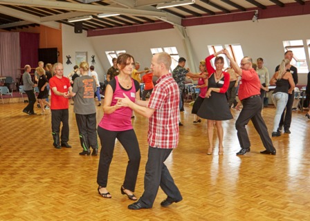Das vielfältige Angebot stieß auf reges Interesse. 19 Referenten stellten ihr Fachwissen zur Verfügung und die Teilnehmer, die aus sieben Landestanzsportverbänden angereist waren, nutzten die fachlichen Einheiten zum Ausprobieren und zum Üben. Einiges wurde noch gleich am Samstagabend auf der Lindy Hop Party umgesetzt.