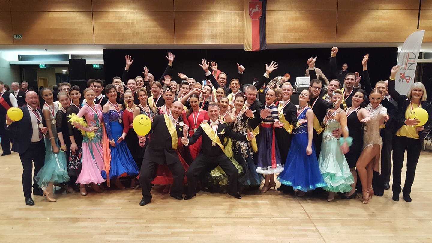Präsident Jürgen Schwedux eröffnete den Abend mit der Begrüßung der Ehrengäste und seiner Mitmoderatorin: Mit Pressesprecherin Martina Lotsch führte er galant durch die Veranstaltung. Als das Niedersachsenlied erklang, und die Akteure einmarschierten, ertönte der erste Jubel im Saal. 71 Paare füllten die Tanzfläche und boten ein wunderschönes, farbenfrohes Bild. In fünf Runden traten die drei Teams gegeneinander an, pushten sich gegenseitig zu tollen Leistungen und hatten sichtlich viel Spaß. Besonders der Kontrast zwischen Jugend- und Senioren IV-Paaren, Breitensportlern und S-Klasse Tänzern war ein interessanter Mix, den das Publikum den ganzen Abend über mit reichlich Applaus honorierte.