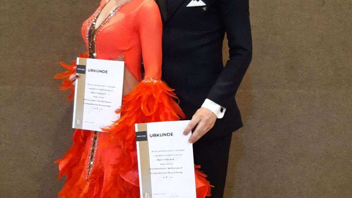 In dem mit 18 Paaren besetzten Turnier der Hauptgruppe S Standard erreichten Luc Broder Albrecht und Luise Maul von der Tanzsportgemeinschaft Nordhorn das Semifinale uind belegten Platz 12.