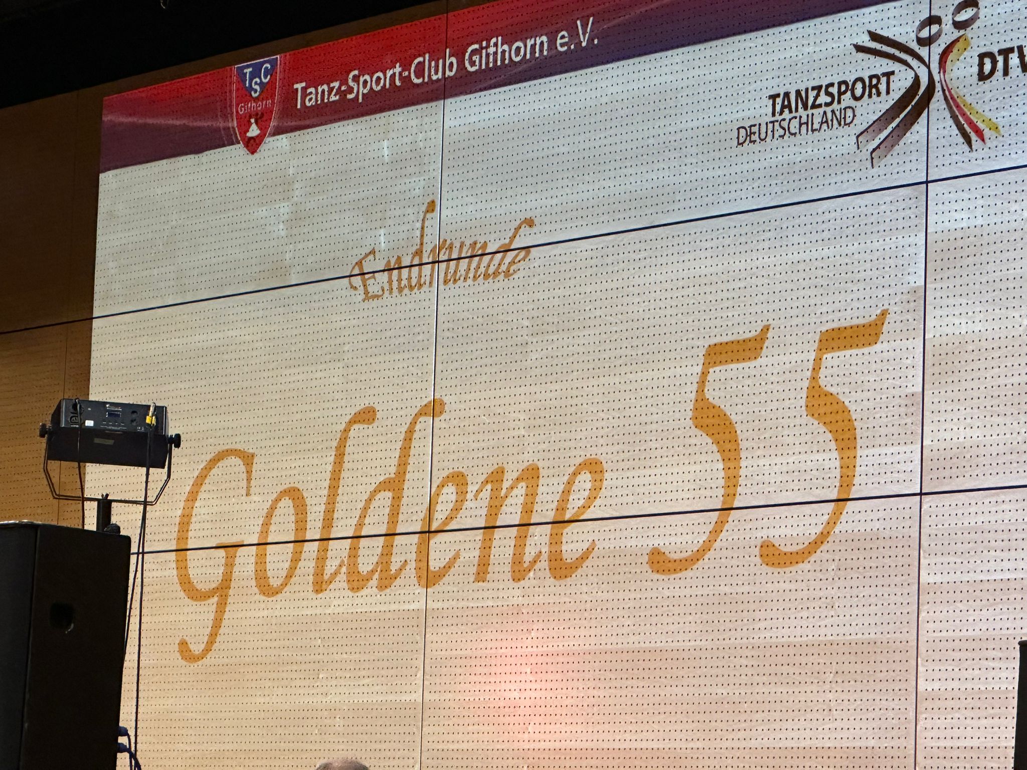 In der Stadthalle Gifhorn fand im Rahmen einer Ballveranstaltung mit insgesamt 27 Paaren das Abschlussturnier der Serie der Goldenen 55 statt. Knapp 500 Ballgäste verfolgten das Turnier mit Spannung und sorgten für eine super Atmosphäre. Tanzrunden und Showeinlagen, unter anderem von der A-Formation des Braunschweiger TSC, rundeten das Event ab.