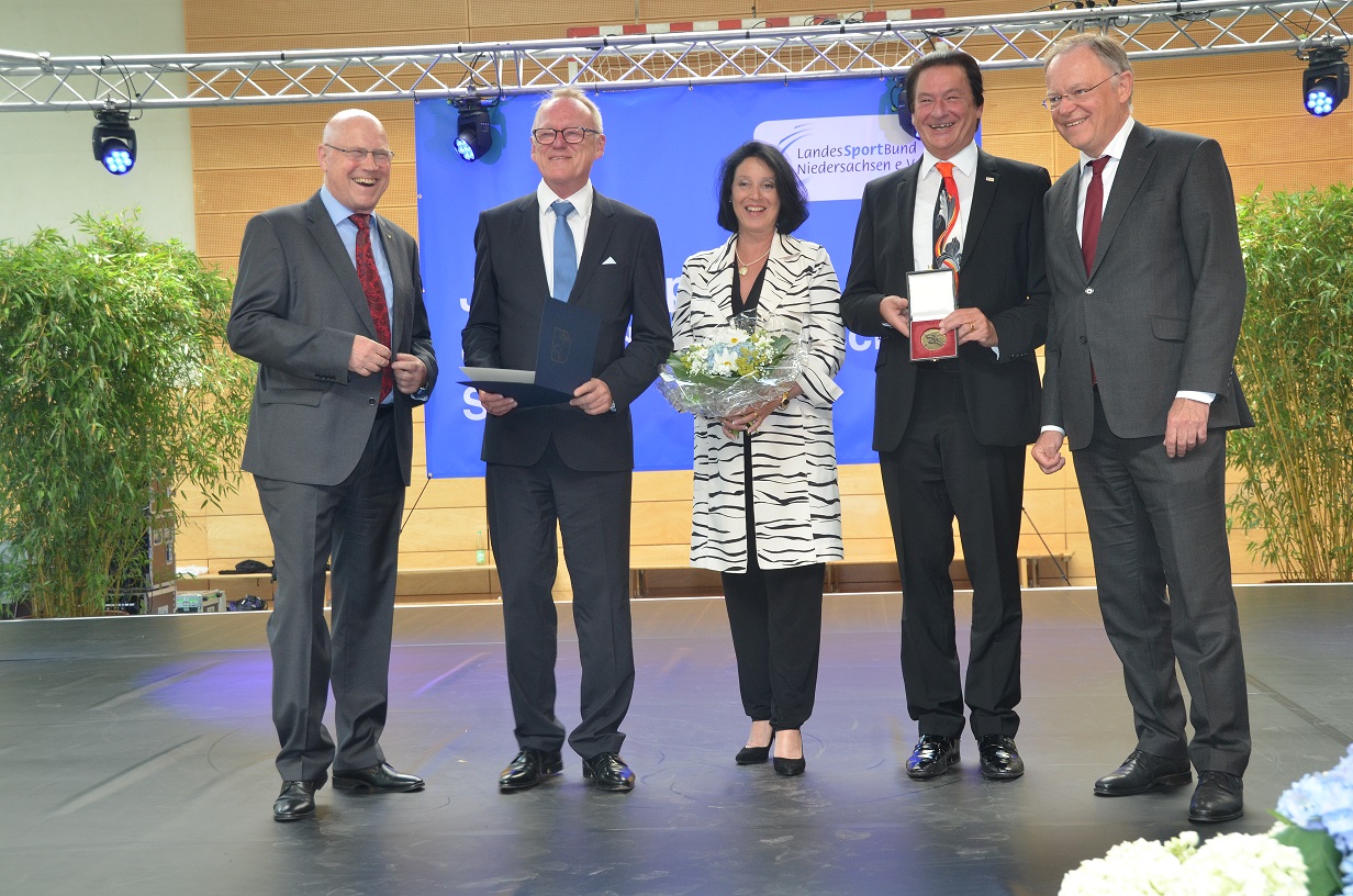 Am 16. Juni hatte der Landessportbund Niedersachsen zum Jahresempfang des niedersächsischen Sports 2018 nach Hannover geladen. Im Rahmen dieser Traditionsveranstaltung wird stets die Niedersächsische Sportmedaille vergeben. Niedersachsens Ministerpräsident Stephan Weil und LSB Präsident Wolf-Rüdiger Umbach begrüßten über 300 Gäste auf dem Gelände des Landessportbundes – darunter viele Ehrengäste aus Politik, Wirtschaft und Sport sowie die Preisträger.