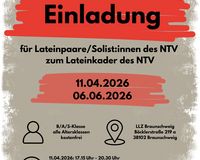 Achtung an alle Lateinpaare: der Lateinkader lädt ein! Weitere Infos sind dem Newsletter zu entnehmen oder auf der Homepage zu finden.